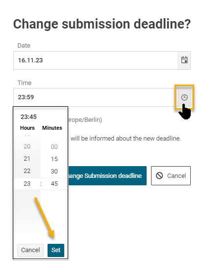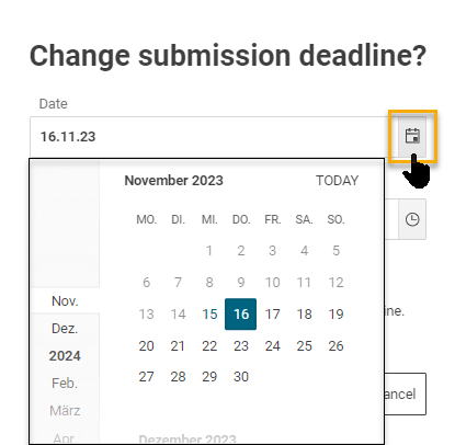 Button for changing the submission deadline