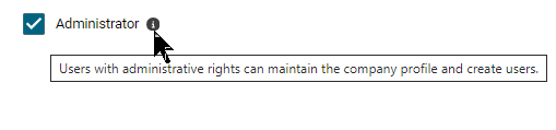 The new user can be appointed as an administrator for your organization which allows them to maintain all company data and also create new users. This role can be subsequently added or removed.