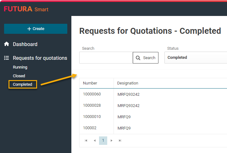In requests with the status "Completed", a quotation opening may either have already been carried out or the status was set manually to it.