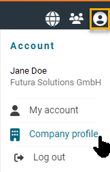 With the profile button at the top right, you can access your personal data and the company profile.