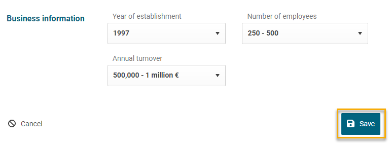 Button to save the company data
