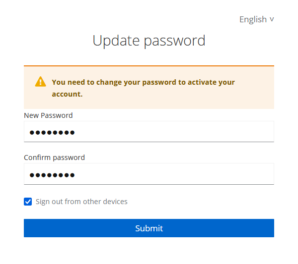Eerste login met nieuwe account