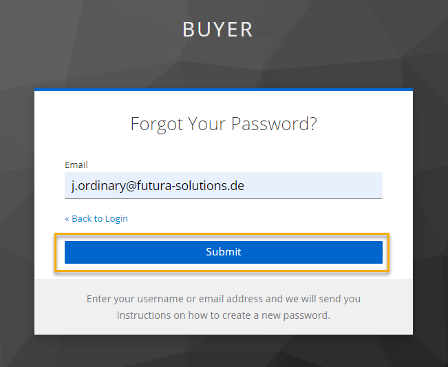 Voer vervolgens uw e-mailadres in en klik op "Submit" (Indienen).